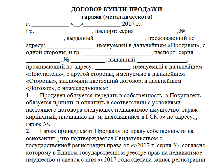 В общем виде купля-продажа металлического гаража не имеет существенных отличий от оформления сделки касательно любого другого движимого имущества. Очень важно указать все существенные условия, чтобы сделку не было возможности признать ничтожной.