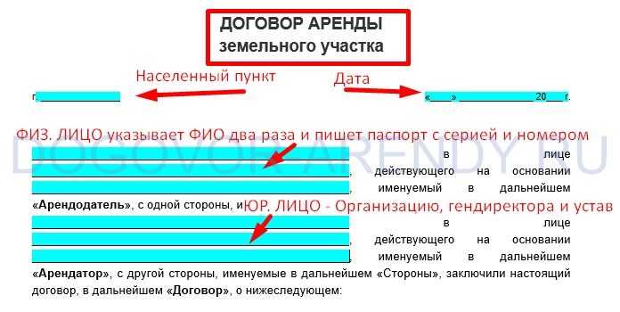 2. В преамбуле указываются участники сделки: арендодатель и арендатор. Если предоставляет участок в аренду организация, то вносится ее наименование и сведения о том, лице, которое является правомочным при заключении таких операций.