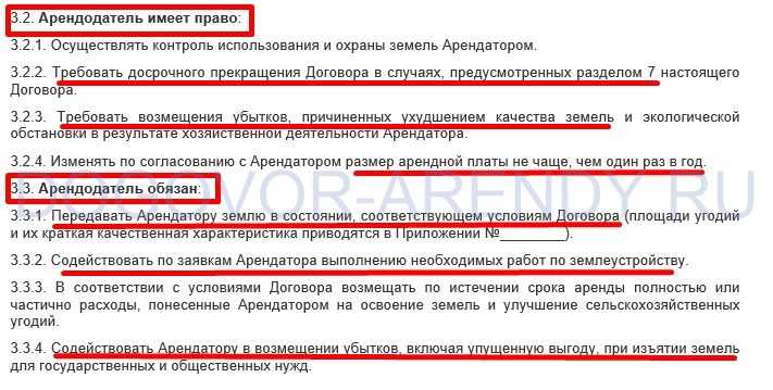 6. У арендодателя, в свою очередь гораздо меньше обязанностей. Это вполне закономерно, ведь это он сдает в аренду землю. Ознакомиться с ними можно обратившись к нашему заполненному образцу договора.