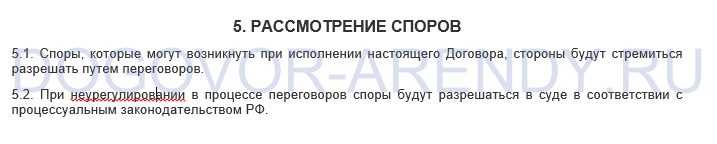 8. Споры по аренде разрешаются путем переговоров либо в суде.