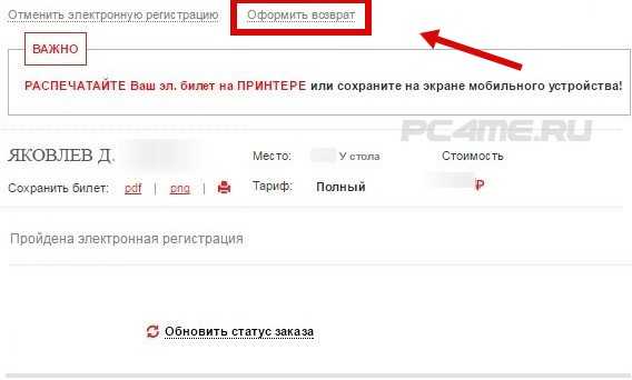• После чего, вы окажитесь на другой странице, где будет отображаться надпись «Оформить возврат». Кликнув по ней, активируется электронная система возврата билета.