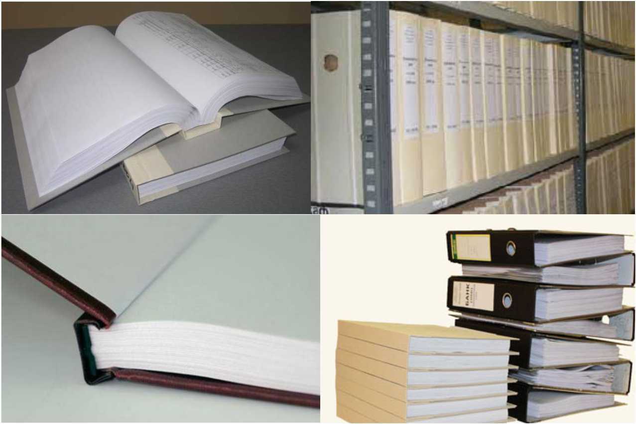 - Обложки. Бывают трех видов: обычные — размер таких обложек 22,9 на 32,4 см (этот размер подходит для документальной бумаги стандартного размера А4); нестандартные — обложки этого вида используются в том случае, когда размер бумаг отличается от стандартного; для архивного хранения — такие обложки производят в большом количестве форматов (изготовлены из очень твердого картона и это способствует длительному хранению документации).