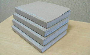 Достав документы из пресса, остается только открыть обложку и наметить линии ее загиба с тыльной стороны, которая, отворачиваясь назад, частично закроет хвостики нитей. Чтобы этот загиб лучше держался, его не только промазывают клеем ПВА, но и проклеивают посредине скотчем, помимо которого на нитях также будет размещаться прямоугольный листочек с информацией о нумерации и прошивке. На боковой части такой книги можно наклеить листочек с названием: например, «Книга продаж за 2016 год».