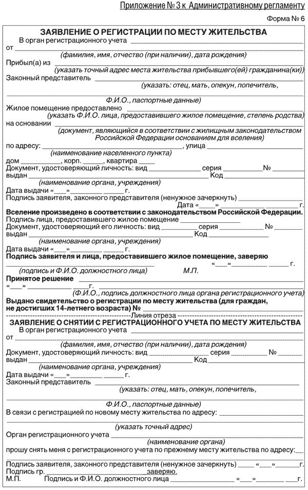 Несовершеннолетние, достигшие возраста 14-ти лет, подают заявление о регистрации в жилом помещении, занимаемом родителями (законными представителями), от своего имени. В случае регистрации по месту жительства в жилом помещении отдельно от родителей (законных представителей), в соответствии с п. 118 Регламента, к заявлению прилагается письменное согласие родителей (законных представителей) или одного из них.