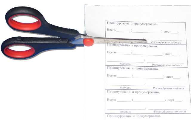 • когда клей подсохнет, на заверителе вписывается количество листов арабскими цифрами и в скобках прописью, его подписывает ответственное за составление дела лицо, а юридические документы — руководитель и ставиться печать.