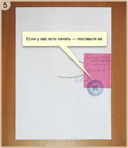 Подпись ставится после того, как высохнет клей, чтобы она не размазалась. Печать находится частично на заверительной надписи, частично на листе.