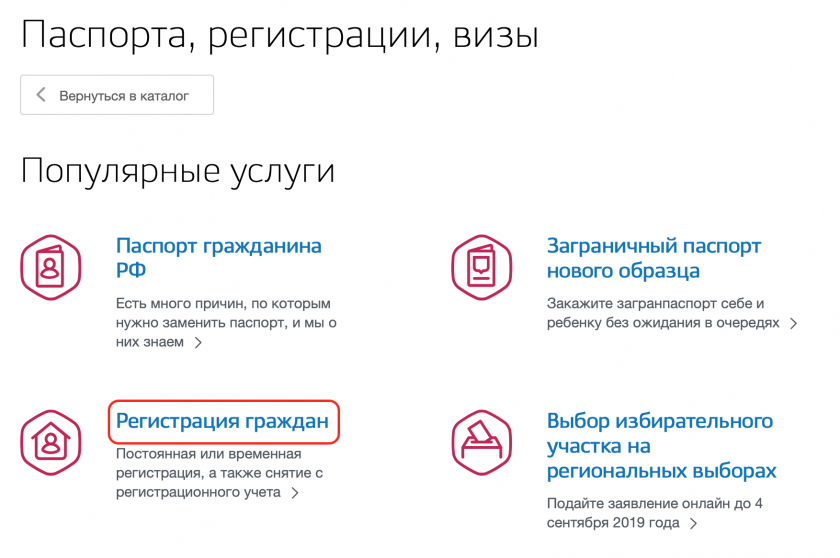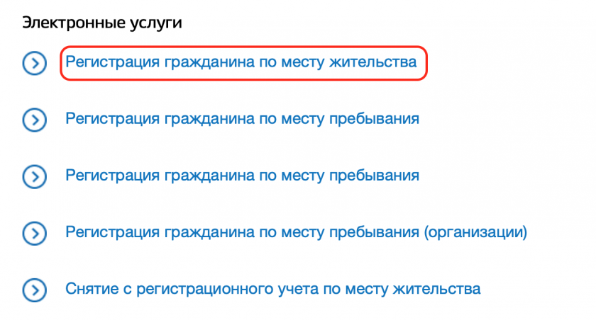 - В открывшейся вкладке выбрать «Регистрация гражданина по месту жительства»;