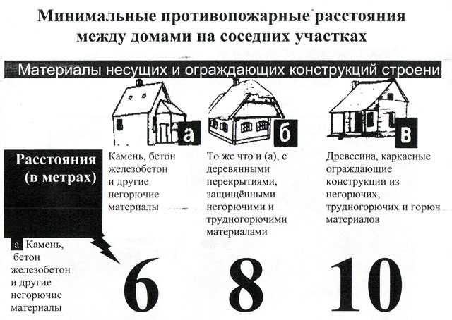 Схема: Противопожарные расстояния между домами на соседних участках.
