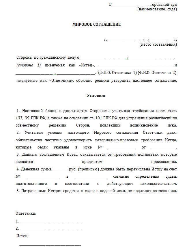 Образец мирового соглашения
