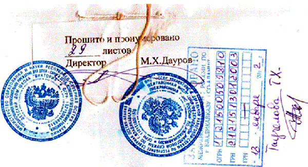 Далее на узел наклеиваем небольшой квадратик бумаги, который должен частично закрыть и концы нитки. Сопроводительную надпись на листке заверяем печатью организации и подписью руководителя. Оттиск печати должен выходить на край наклейки.