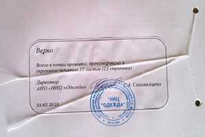 По общему правилу, если производится прошивка документации, достаточно заверить документ на месте прошивки, расположенном на обратной стороне. Обязательно следует указывать число страниц документа в соответствии с нумерацией. Сам процесс заверения предполагает приклеивание прямоугольного отрезка бумаги на узел из ниток так, чтобы оба конца немного свисали после проклейки.