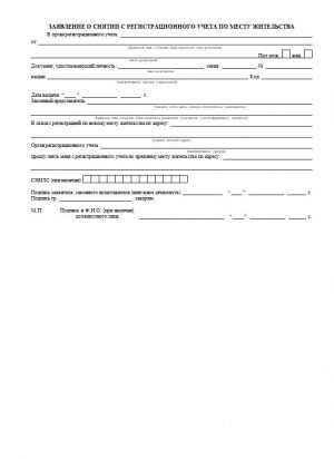 Обычно заявление пишется в паспортном столе по форме №6. При этом если лицо выписывается «в никуда», то в строке, где необходимо указать новое место жительства, можно написать любой адрес.