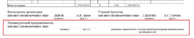 - В подразделе со счетом-фактурой: подписи руководителя организации (или иного уполномоченного лица), главного бухгалтера (или иного уполномоченного лица). Если документ заполняется индивидуальным предпринимателем, то подпись ИП и указание реквизитов свидетельства о государственной регистрации ИП. Подпись уполномоченного лица, которое подписывает документ вместо предпринимателя, с 1 октября 2017 ставиться в поле для дополнительной подписи.