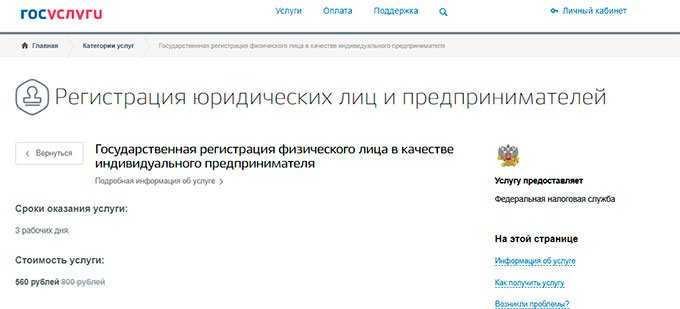 - Перейдите в соответствующую вкладку «Государственные услуги – Каталог услуг – Бизнес, предпринимательство, НКО – Регистрация юридических лиц и предпринимателей – Государственная регистрация физического лица в качестве индивидуального предпринимателя» или просто перейдите по ссылке;