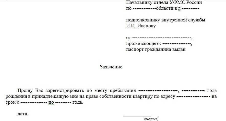 Заявление по форме № 1 с просьбой зарегистрировать гражданина пишет собственноручно собственник предоставляемого жилья или уполномоченное лицо администрации учреждения, где гражданин планирует временно проживать.