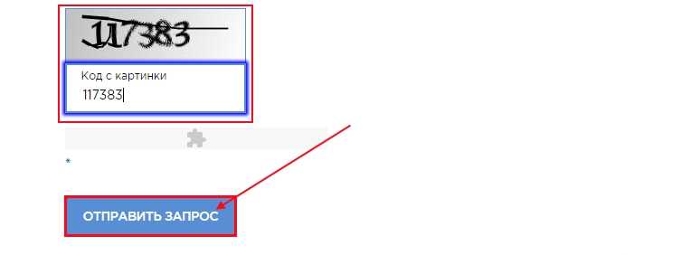 Необходимо ввести проверочный код и нажать «Отправить запрос».