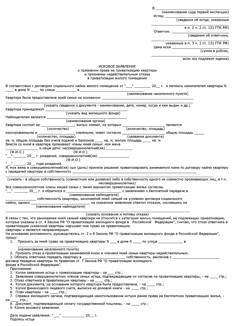 - Заявление о приватизации.