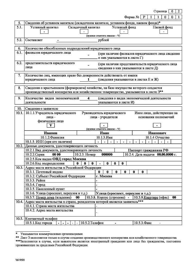 - заявление, написанное в типовой анкете о создании юридического лица №Р11001, с заверенной у нотариуса подписью учредителя.