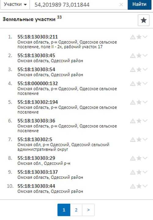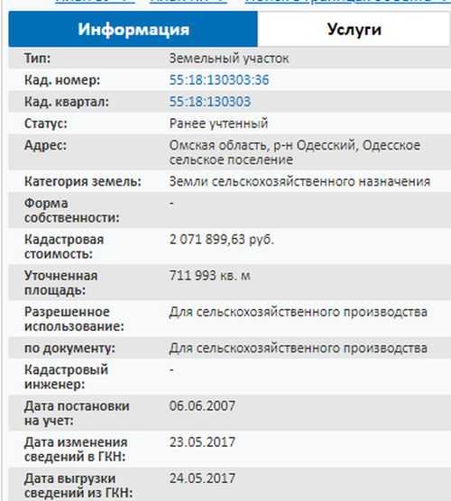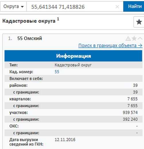 Например, если ввести «Омск» и кликнуть по «Омский кадастровый округ», появится таблица: