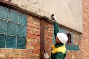 отбивка отслоившейся отделки наружной поверхности стен (штукатурки, облицовочной плитки);