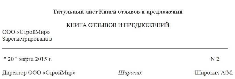 Подробнее о том, как оформить книгу жалоб и предложений, чтобы избежать ошибок при заполнении документа, читайте тут, а в этом материале узнайте, как заполнить титульный лист книги отзывов и предложений.