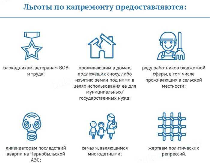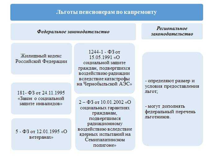 Конкретные условия и порядок оформления льгот на капитальный ремонт устанавливаются нормативно-правовыми актами субъектов РФ. Соответственно, в каждом регионе они свои.