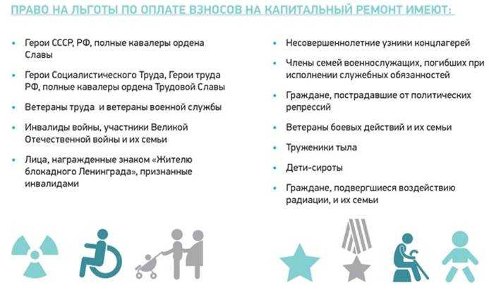 В каждом регионе утверждены свои льготы по капремонту, а также перечислены категории граждан, претендующие на такую социальную поддержку. Узнать, предусмотрены ли в вашем регионе льготы или компенсации по взносам, можно в соцзащите населения вашего региона.