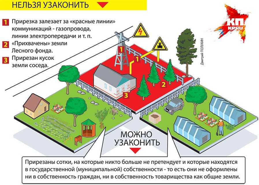 Самозахват не должен вылезать за пределы так называемых красных линий — ими на территориальных планах обозначаются участки, по которым проходят какие-то коммуникации (например, газопровод или линии электропередачи), придорожные полосы и т. п.