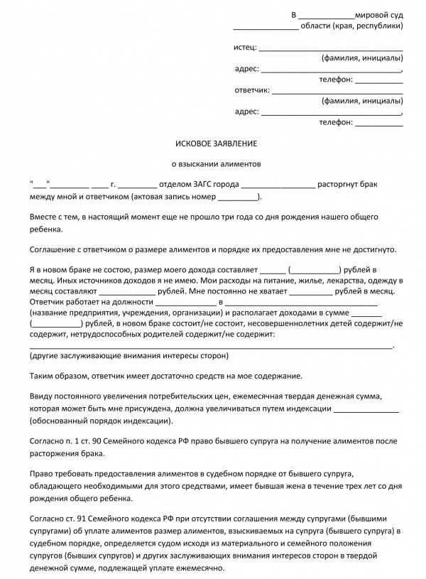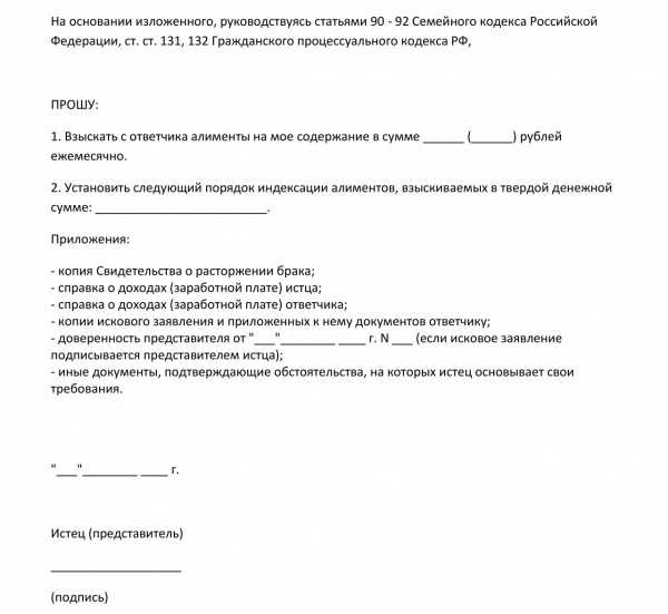 Нередко супруги одновременно подают в суд заявление на развод и алименты (бланк вы сможете найти в конце материала). А также могут в нем же указать порядок желаемого раздела имущества или попросить определить, с кем из родителей будет проживать ребенок после развода. Тогда и форма этого заявления и перечень документов расширятся. Как минимум, понадобится не одна квитанция об уплате госпошлины.