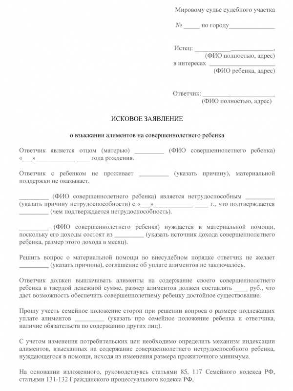 Что касается совершеннолетнего нетрудоспособного ребенка, подать на алименты может он сам, но только при условии обладания полной дееспособностью. За тех, кто был лишен или ограничен в ней судом, юридически значимые действия будет выполнять назначенный опекун или попечитель.