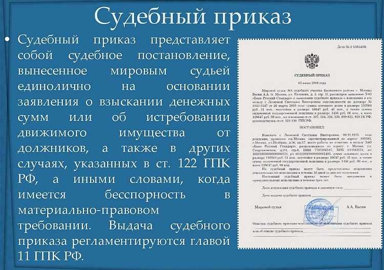 Судебный приказ – этот тот документ, который выписывает представитель судебной инстанции по итогам ведения дел о взыскании денежных средств и имущества при условии, что стороны не присутствовали при разбирательстве. Вынесение приказа говорит о том, что требование истца должно быть удовлетворено в обязательном порядке, поскольку ответчик не дал на него никаких возражений.
