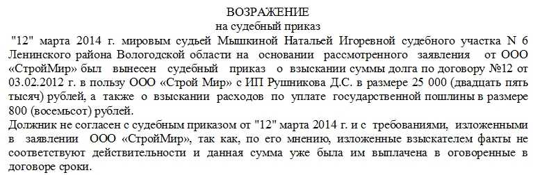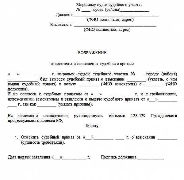 Как правильно написать возражение на судебный приказ по кредитному договору