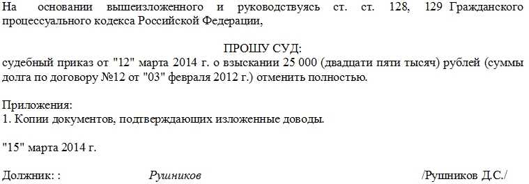 Как отменить судебный приказ — образец заявления и порядок обжалования