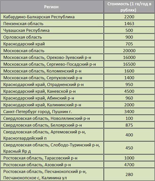 Размеры коэффициентов зависят от статуса земли, её расположения, пригодности к тем или иным работам, и других региональных норм. Узнать о них подробнее можно в Земельном комитете того района, где предполагается арендовать надел.