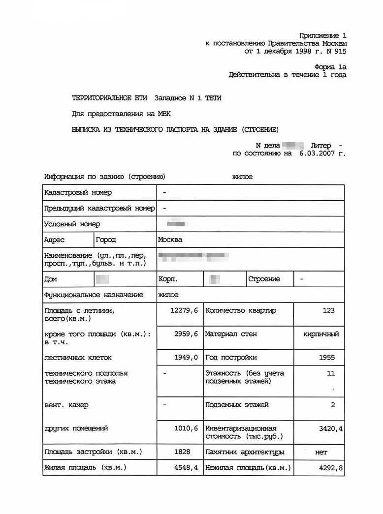 Справка БТИ по форме 1а — это выписка из техпаспорта с кратким описанием квартиры и дома.