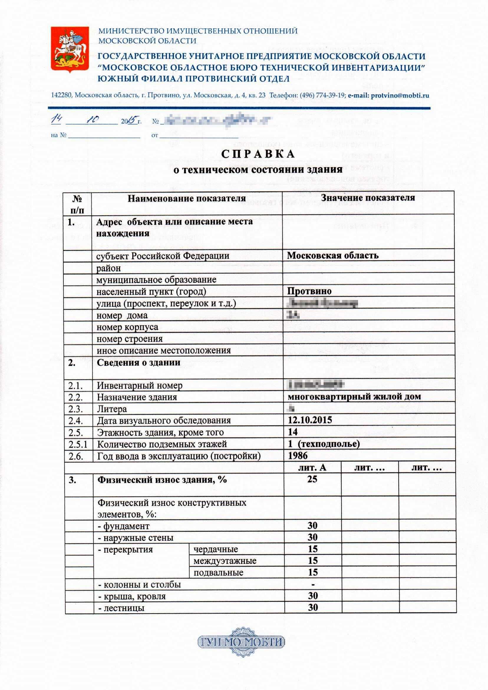 Форма 5 — о состоянии здания или помещения — может понадобиться для покупки квартиры в ипотеку, перепланировки или выдачи кредита под залог недвижимости. В некоторых банках допускается износ до 70%, но в среднем — до 60%.