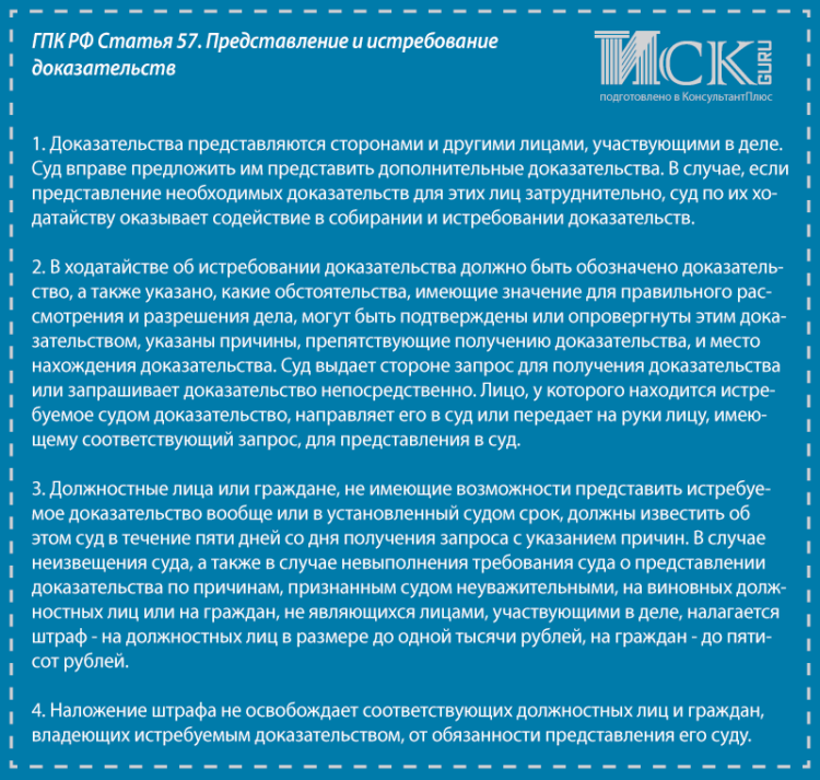 • статья 57 ГПК РФ предусматривает штраф в размере 500 рублей для граждан и 1000 рублей — для должностных лиц;