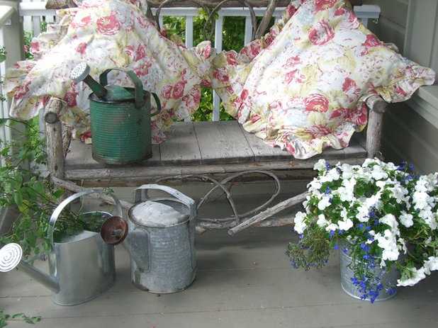 Если вокруг еще простирается целина, а наслаждаться цветами хочется уже сейчас, разбейте контейнерный сад. Купите несколько вазонов с петуниями, настурциями, хризантемами. Или сделайте более разнообразную композицию. В ящики можно пока высадить и те многолетники и даже кустарники, которые вы все же купили. Не беспокойтесь, что вы зря потратите деньги на все эти кашпо. Контейнерное озеленение сейчас необыкновенно популярно — кашпо найдут свое место и в уже выросшем саду. Поэтому выбирайте сразу те формы и цвета, которые вам по душе.