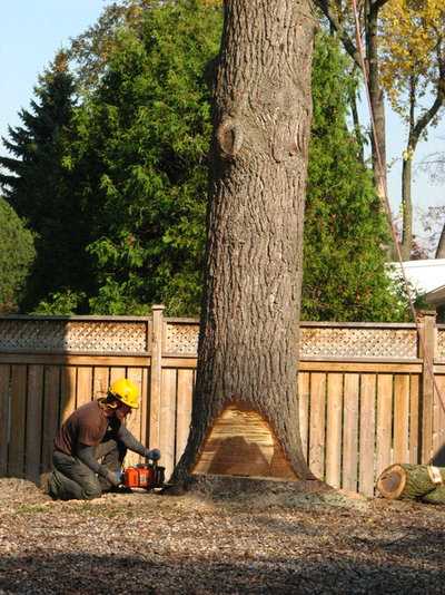 Совет: Стволы сохраняемых деревьев защитите кожухами из досок, чтобы не повредить их во время строительных работ.