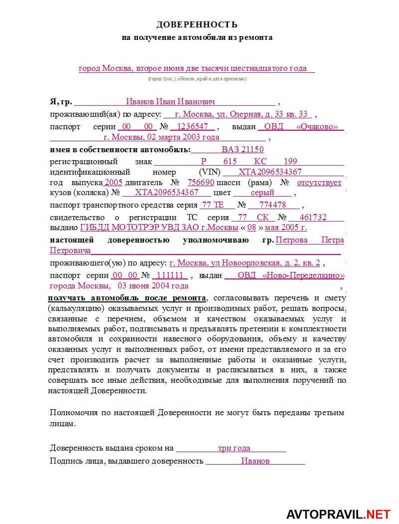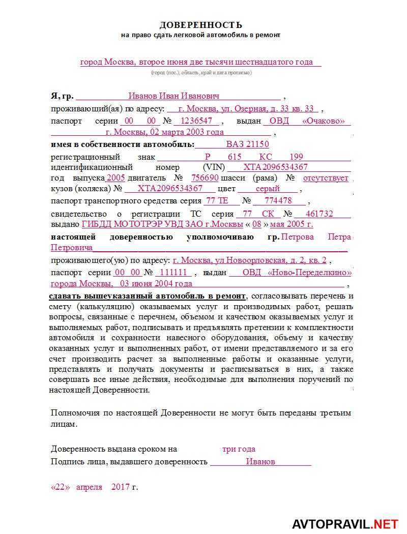 Оформление доверенности на ремонт автомобиля от частного лица или организации: детали и образец