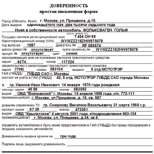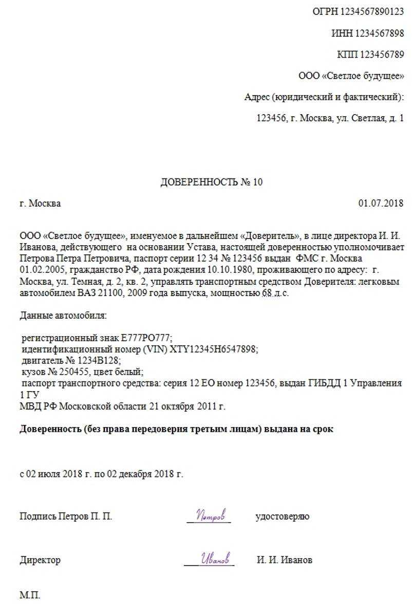 Таким образом, текст об уполномочии должен содержать информацию о владельце, водителе, транспортном средстве, действиях, которые можно совершать с авто, а также срок действия полномочий.