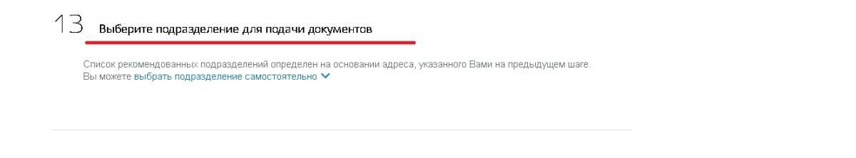 Шаг 11. На основании указанного адреса места жительства выберите подразделение для дальнейшего получения нового паспорта.
