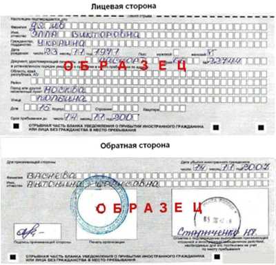 Отрывная часть бланка уведомления о прибытии иностранного гражданина в РФ