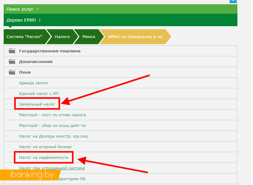 Инструкция об оплате земельного налога и налога на недвижимость через Расчет «ЕРИП»