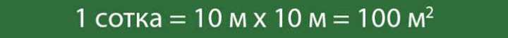 площадь размером в 1 «сотку» = 100 квадратным метрам (1 сотка = 100 м2).
