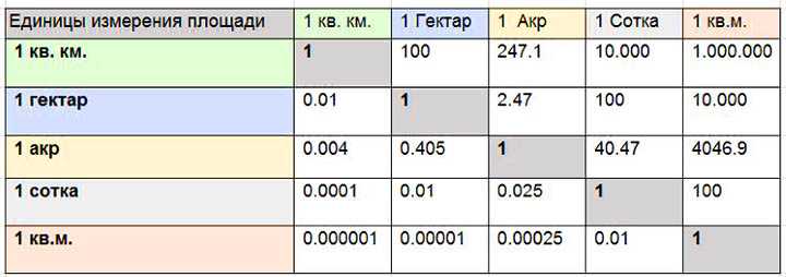 В Российской Федерации площади участков земли измеряются следующим образом: