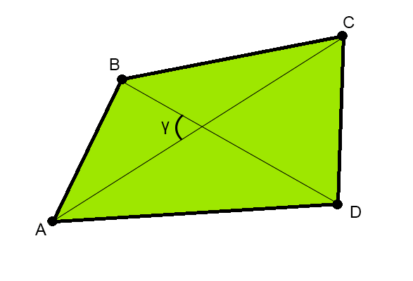 • Перемножаем диагонали и делим их на два. Полученное число умножаем на синус любого угла между диагоналями.