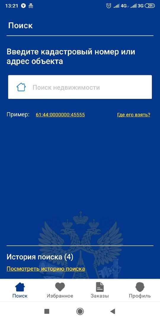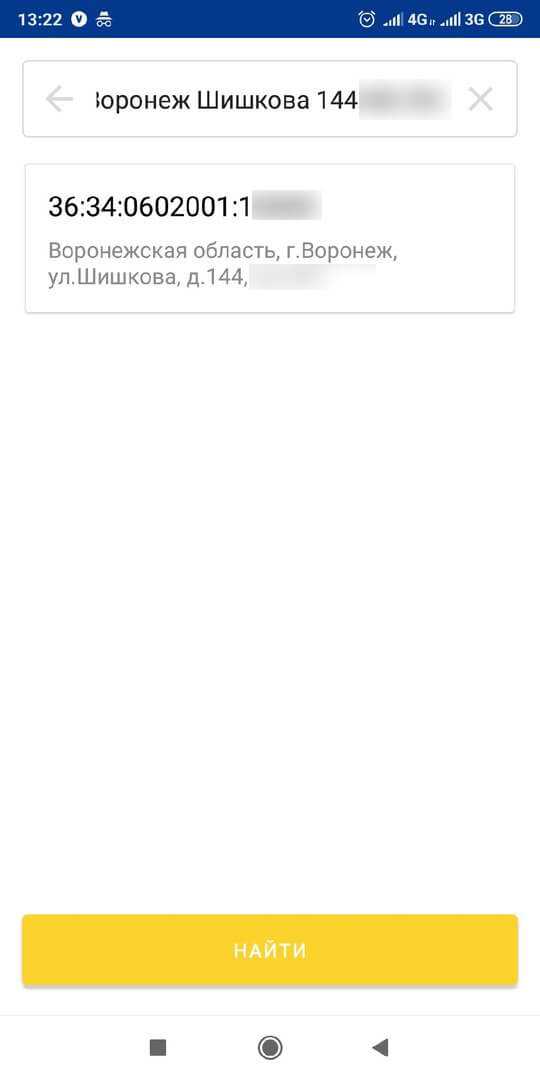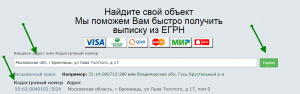 - Зайдите в наше приложение и введите в поле кадастровый номер или адрес объекта, который вас интересует: