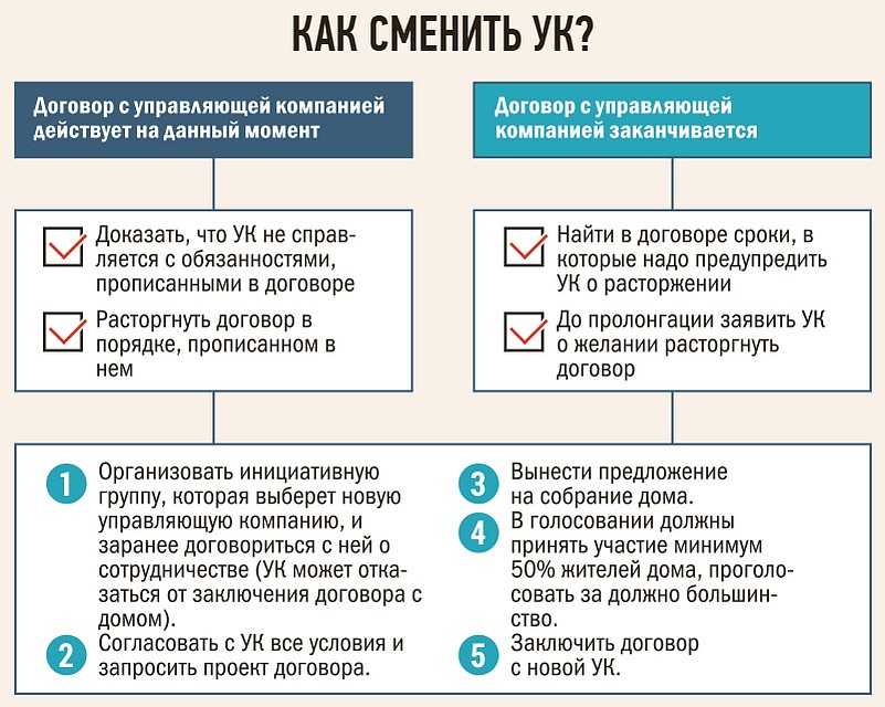 Просто так расторгнуть договор со своей УК нельзя. Он должен либо закончиться, либо «управляйка» должна его серьезно нарушить – например, не переводить деньги на услуги ЖКХ , как это было с Городской УК. В этих случаях можно задуматься о смене. Чтобы ее провести, необходимо: