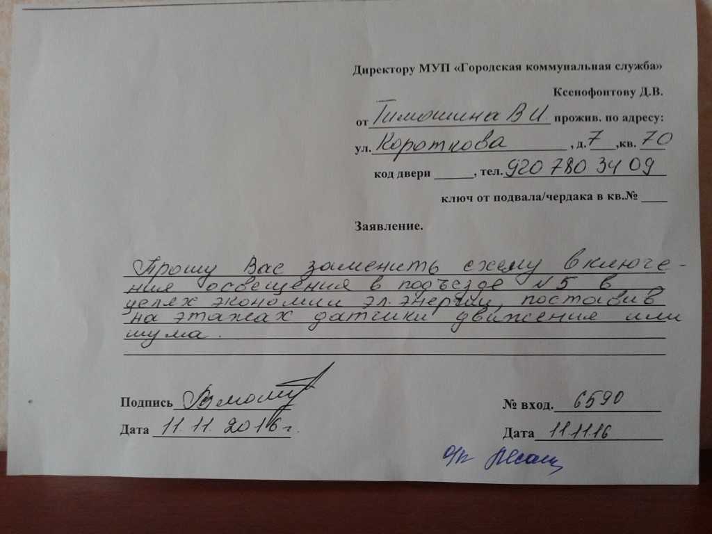 Образец заявления на модернизацию освещения в подъезде. Фото: or71.ru